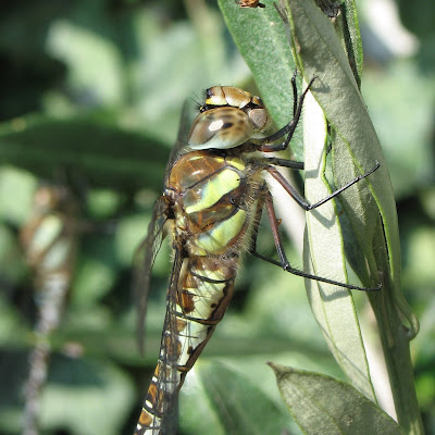 Although dragonfly migration has been known for over a century, it is still a little known phenomenon. Several British dragonfly species are regular long-distance migrants, like the Four Spotted Chaser and the Common and Ruddy Darters, and others occasionally appear as vagrants from the Mediterranean or even from North America. Where do they go and why do they do it? Do they migrate back and forth or do they just wander? Is this behaviour to avoid overcrowding or drought, in search for good sites for reproduction? David and Elizabeth Lack (1951) favoured the existence of large scale two way migration in dragonflies, like that of many birds and butterflies, after observing large numbers of Common Darters passing over a high mountain pass in the Pyrenees. American migrants tend to be species breeding in ephemeral or semipermanent ponds, which dry frequently, so migration might also be a wandering in search of suitable ponds. Recently, a combination of miniaturised radio transmitters, isotope analysis and genetic markers have shed light into the migratory behaviour of the American Common Green Darner, Anax junius. Although the Migrant Hawker has been seen forming large swarms, unfortunately, we know very little about the migration in this species. In any case, its migratory behaviour makes it a very good coloniser. In the early 20th century it was regarded as a rare immigrant - in fact it was called Scarce Hawker -, but since an invasion in 1935 it has been steadily and rapidly expanding its range northwards and westwards in the UK, reaching Scotland in 2004. The species also colonised Ireland in 2000 and is now well established. I can't wait to find out more about these fascinating garden visitors.References